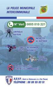POLICE MUNICIPALE INTERCOMMUNALE Pour toute demande à la Police municipale intercommunale : Les ASVP sont à votre écoute au 06 08 55 83 51 Ou le N° Vert : 0805 010 221